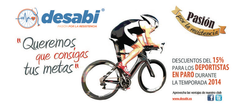 En DESABI somos conscientes de esta situación y queremos ofertar hasta finales del mes de octubre, a todos los ciclistas que actualmente están en el paro, un descuento del 15% para el entrenamiento de toda la temporada 2014. Visita nuestra web www.desabi.es y contacta con nosotros.